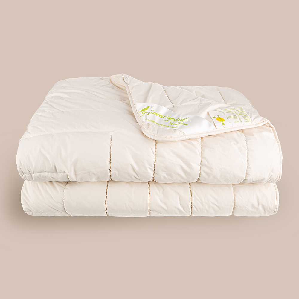 Schurwolle und deren Produkte, in diesem Fall Steppdecken, wirken wärmeausgleichend sind ein reines Naturprodukt. Wolle wärmt im Winter und kühlt im Sommer, ohne nächtliches frieren.