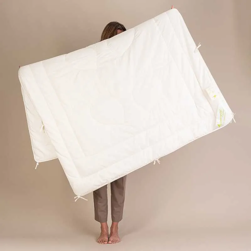 Für Menschen mit hohem Wärmebedarf und sensibler Haut. Kamelflaumhaar speichert Wärme ähnlich hochwertiger Daunen, gleicht aber Feuchtigkeit besser aus – zusammengebunden oder geknöpft, ideal bei kühlen Räumen oder offenem Fenster.