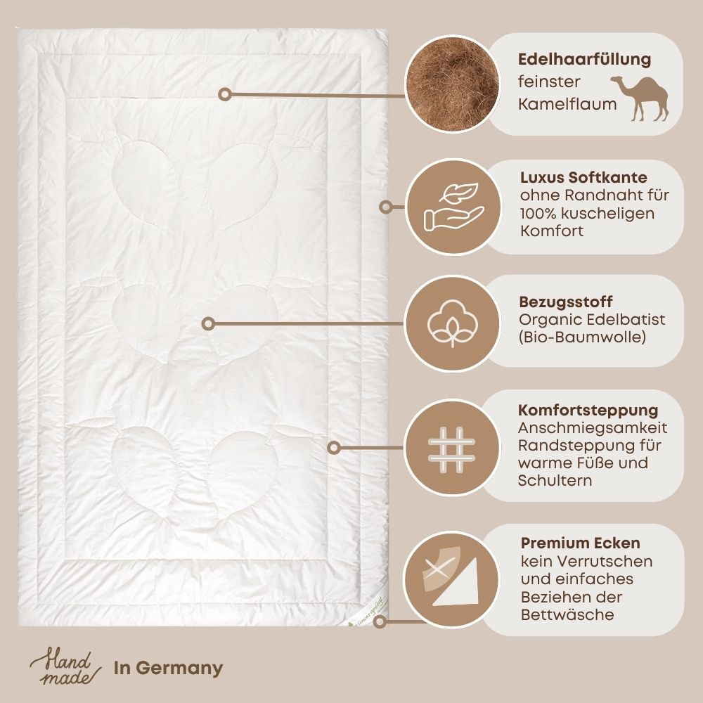 | Füllung: | 100% zweilagiges Kamelflaumvhaar DUO |